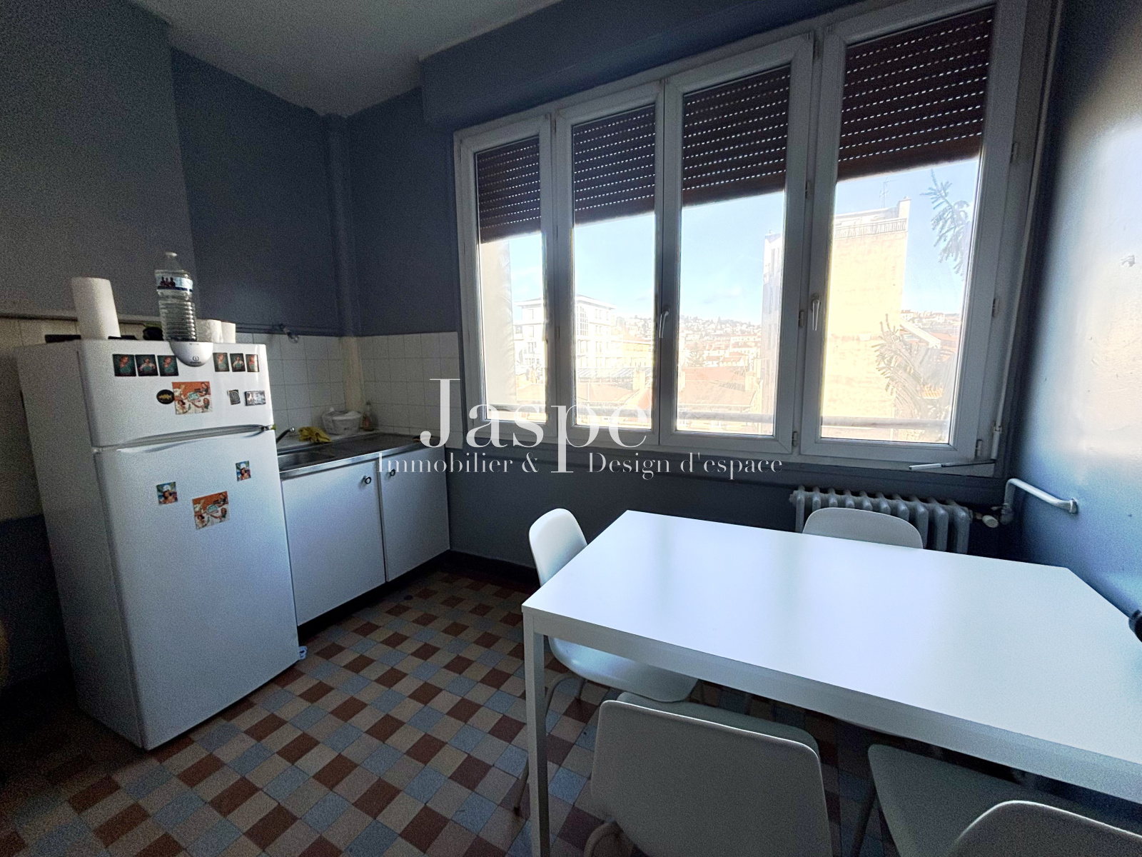 Appartement T2 de 58 m2 situé à proximité de l'université Jean Monnet. Il offre un grand hall d'entrée avec de nombreux rangements, un salon, une cuisine séparée, une chambre, une salle de bain ainsi qu'un wc separé.