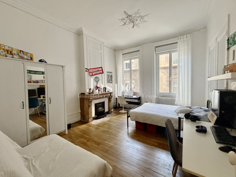 Situé à quelques minutes de la gare de Châteaucreux, ce spacieux appartement traversant de type T3 offre une surface de 100 m². Il se trouve au premier étage d’un petit immeuble de trois étages, bénéficiant d’une double exposition nord-sud.