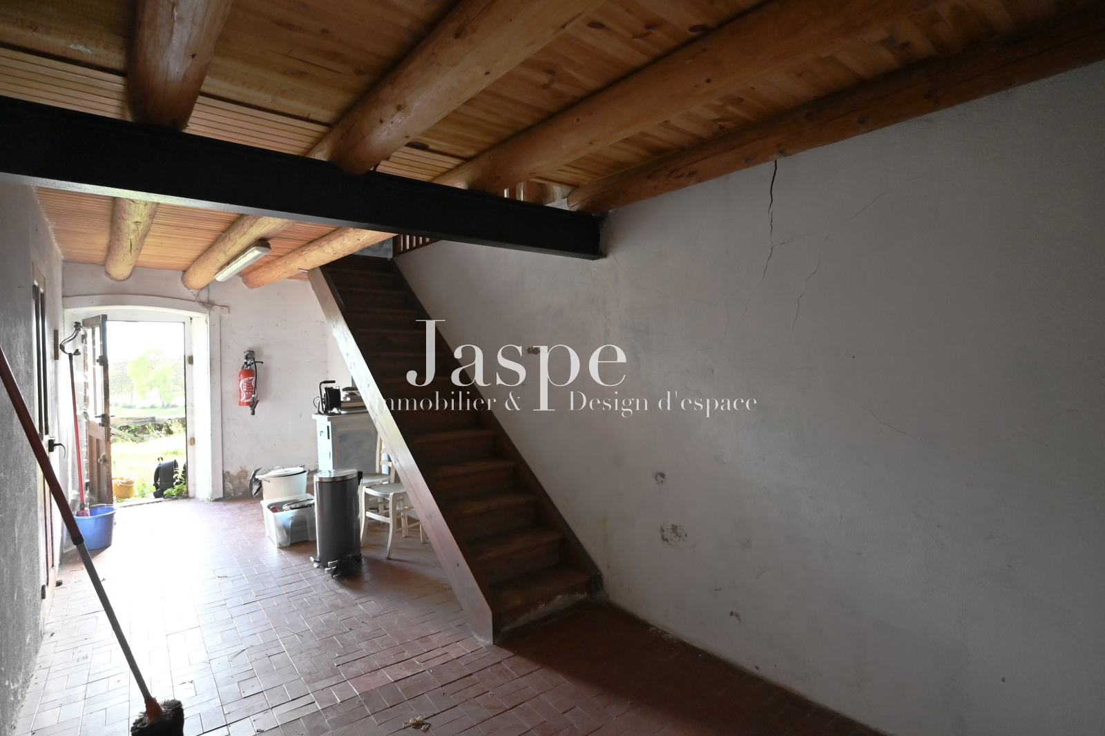 Le ferme est composé d'une partie habitation et de nombreuses dépendances. La partie habitation offre actuellement au rez-de-chaussée un grand salon avec mezzanine et cheminée centrale, un hall d'entrée, une cuisine avec dépendance. À l'étage, se trouvent 4 chambres avec 2 salles d'eau et WC. Dans la partie ouverte, se trouvent un grand préau, des dépendances et 3 chambres supplémentaires à l'étage.