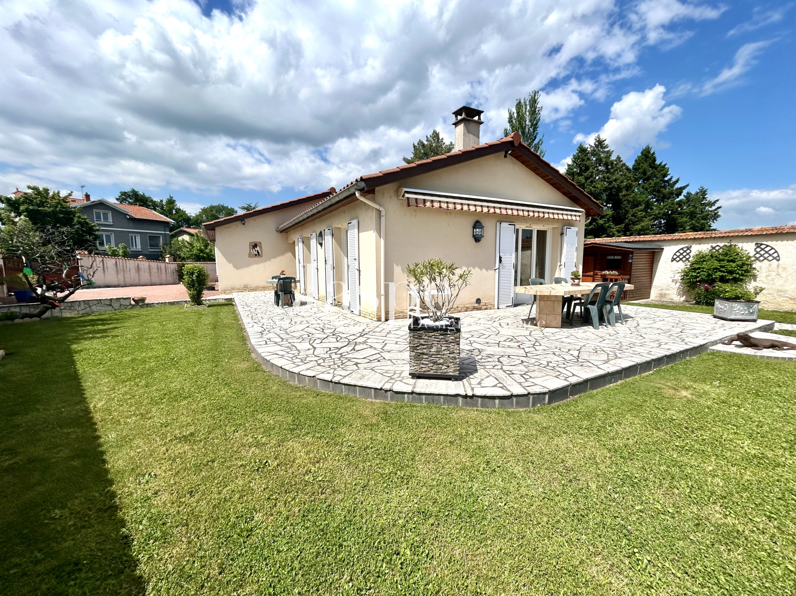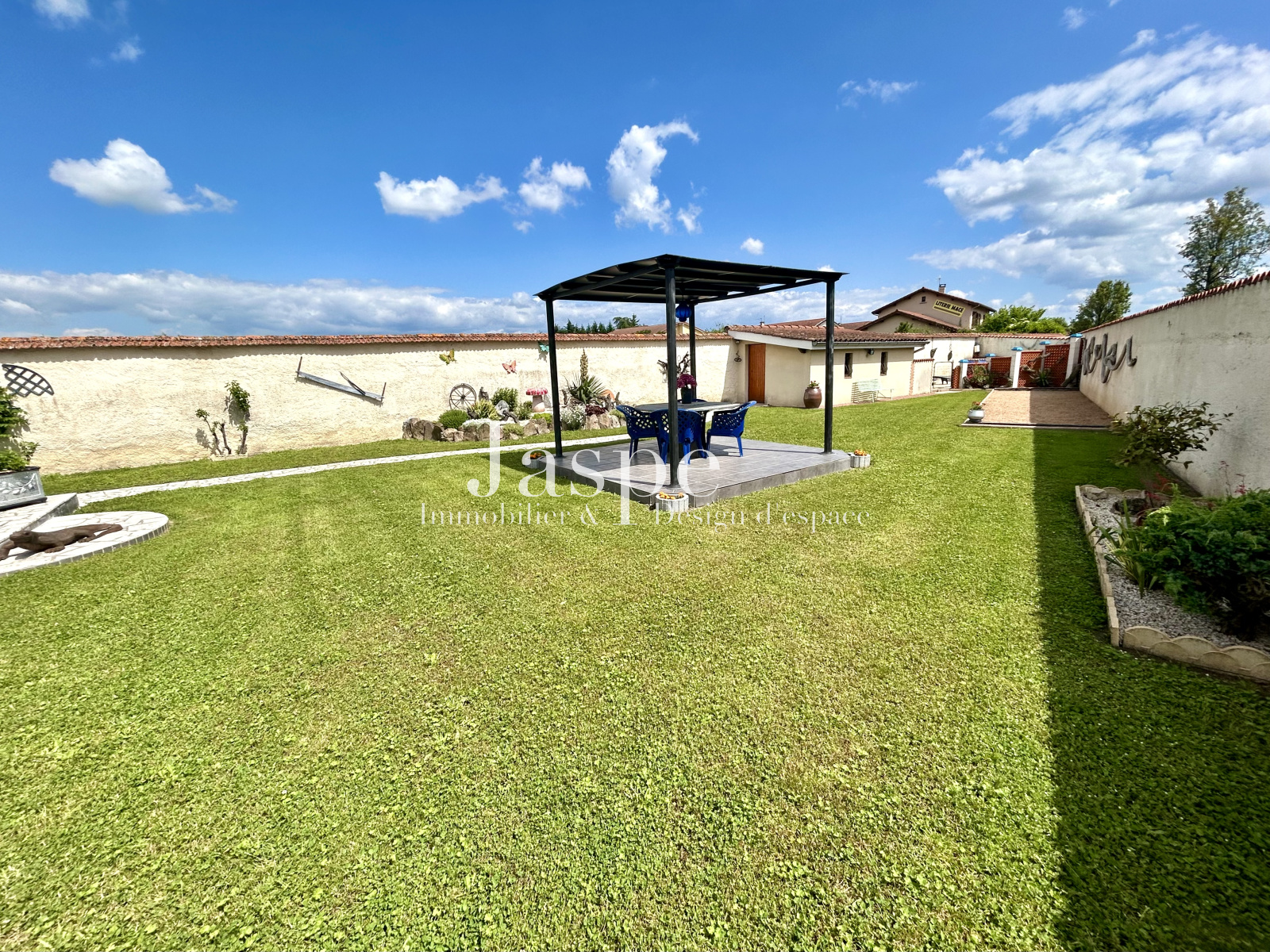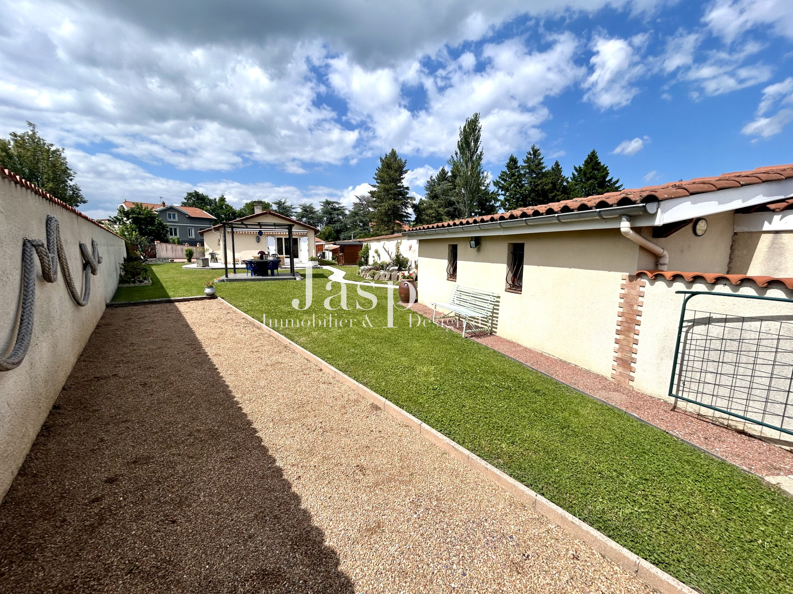 Le tout, implanté sur un beau terrain plat de 932m² parfaitement entretenu avec terrain de pétanque et piscine semi-enterrée.