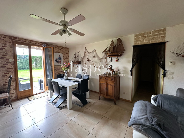 Cette maison est composée d'un séjour, d'une cuisine ouverte, de 4 chambres, d'une salle d'eau, d'un wc séparé et d'un garage.